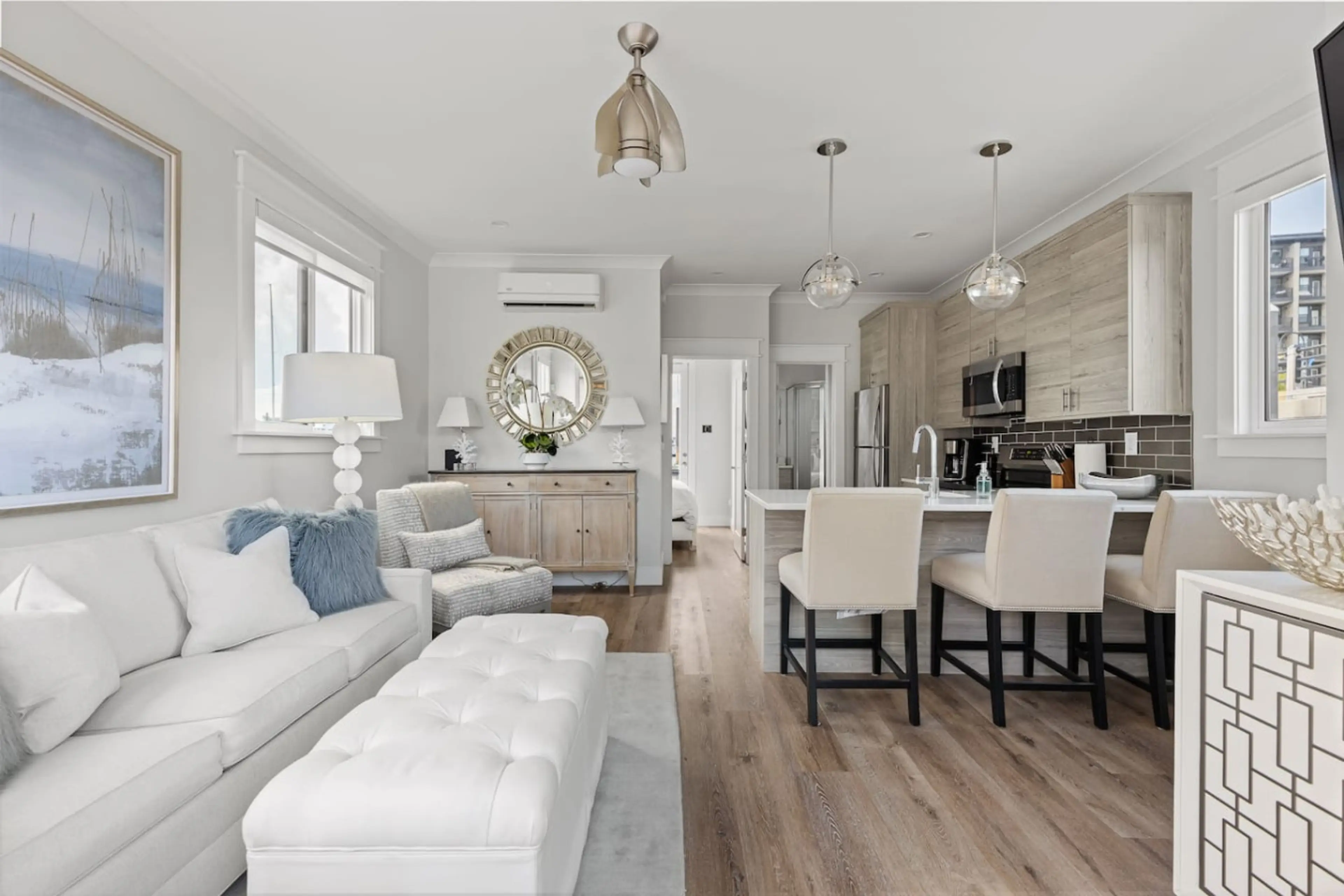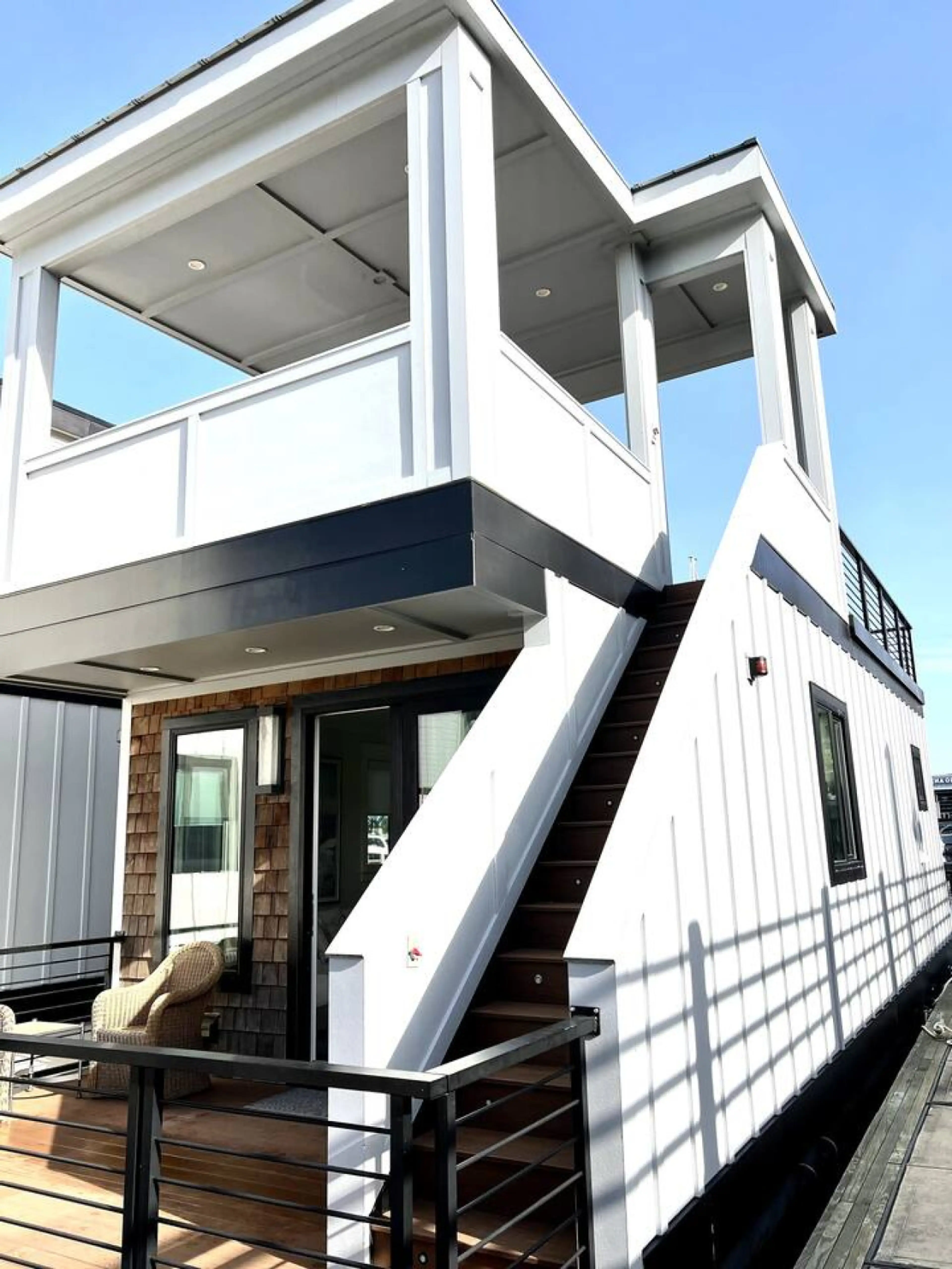 Welcome to The Cove Riverwalk Villas, Wilmington’s most unique vacation rental community! Delight is a unique one-bedroom houseboat at The Cove, featuring a first-floor living area and a spacious rooftop patio for indoor-outdoor living. The cozy Queen bedroom, full bathroom, kitchen, and living roo...