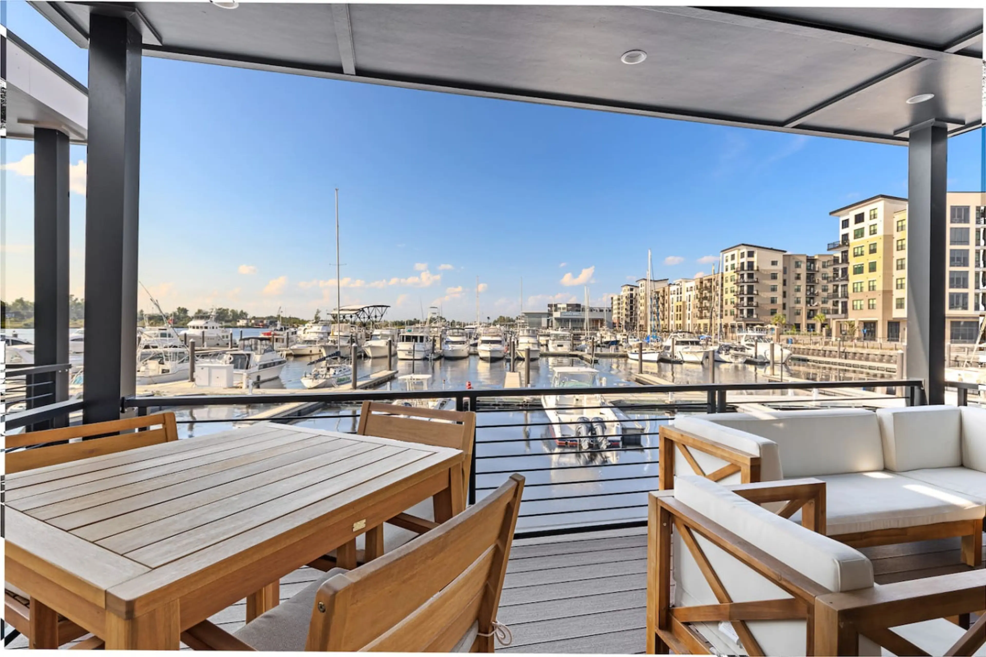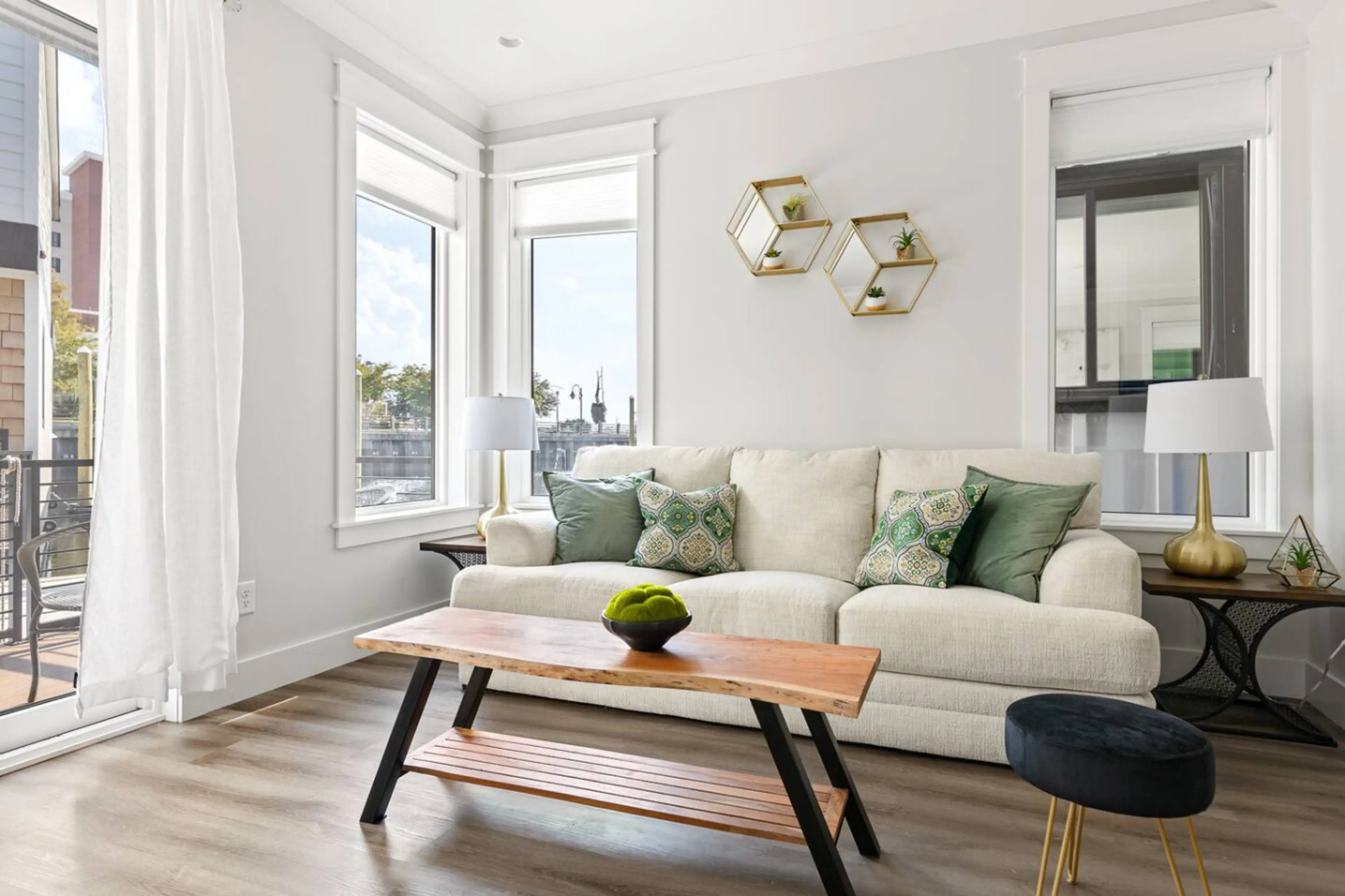 Welcome to The Cove Riverwalk Villas, Wilmington’s most unique vacation rental community! Haven, a pet-friendly villa, offers stunning marina views for the ultimate blue mind experience. This inviting space features a comfortable sofa bed and a dedicated desk on the second floor, perfect for groups...