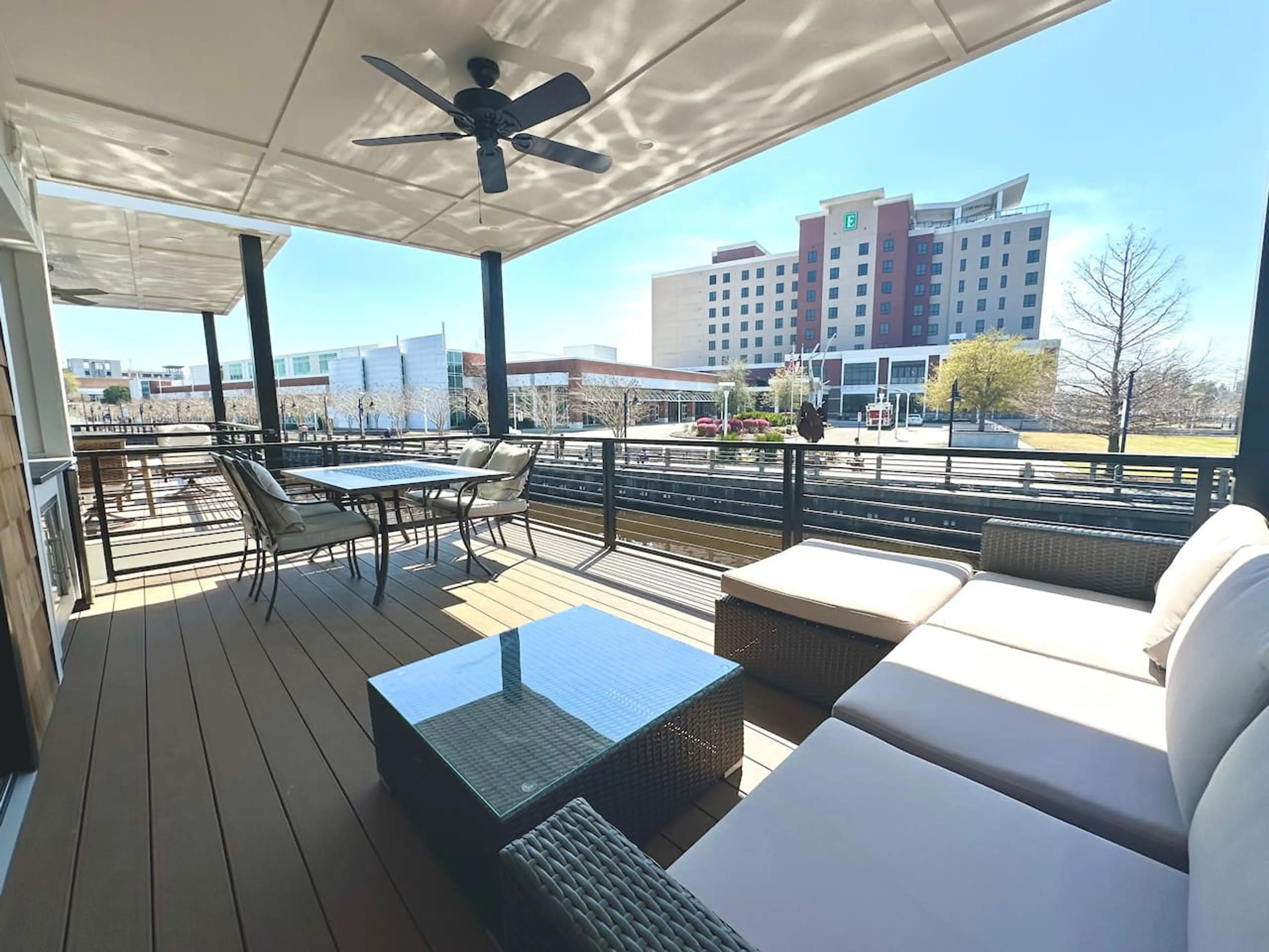 Welcome to The Cove Riverwalk Villas, Wilmington’s most unique vacation rental community! Tranquility offers an exceptional waterfront escape, providing enchanting views of the Riverwalk. This spacious and simplistic houseboat offers the added convenience of a sofa bed and workspace, both located i...